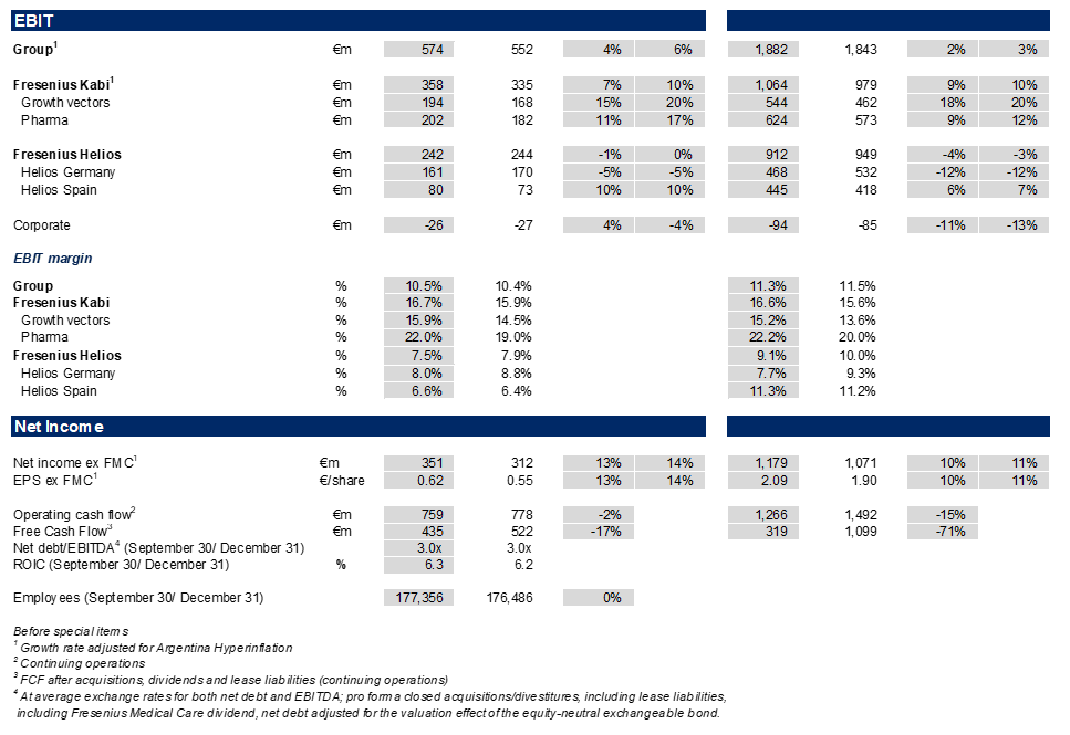 Based on the strong earnings growth in Q1-3/2025, Fresenius raised the Group EBIT growth guidance: