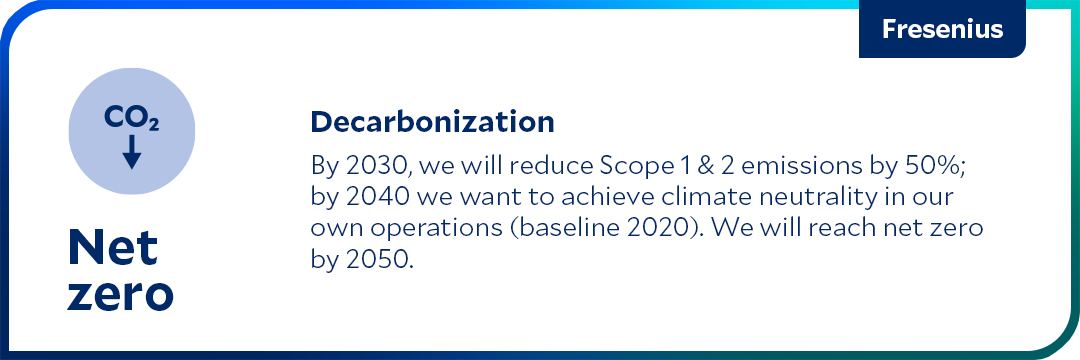 Fresenius manufactures medical products and operates healthcare facilities, which inevitably results in energy consumption and associated greenhouse gas emissions. In production, for example, the machines and containers have to be sterilized, and in our hospitals a wide variety of technical systems are in constant operation. This presents us with special challenges: On the one hand, we want to reduce our energy demand as far as possible and on the other hand, we must always guarantee the safety of patients in our facilities and ensure a stable supply of energy in our production.