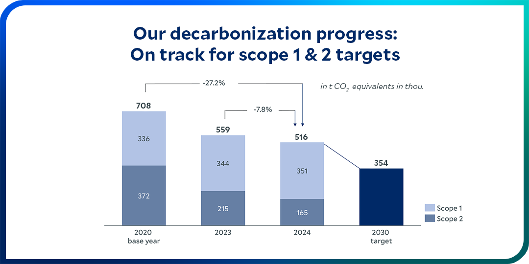 The decarbonization of our value chain is a decisive factor on our long-term path to net zero. Scope 3 emissions include greenhouse gases that are released indirectly in our upstream and downstream value chains – such as from purchased raw materials or at the end of the life of sold products.