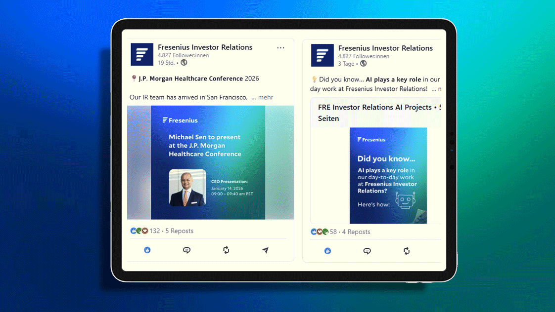 Folgen Sie Fresenius Investor Relations, um Experteneinblicke, aktuelle Nachrichten, die zur Fresenius-Equitystory beitragen, sowie exklusive Inhalte von unserem Team zu erhalten.