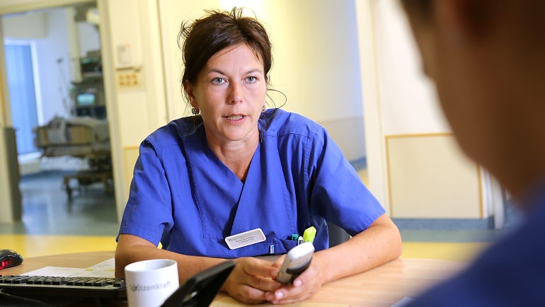 ICU head nurse Mandy Stockmann is busy handing out assignments. “When possible, we team up the less experienced people with the veterans,” she says. By any standard, Stockmann is a veteran: she has been heading the 67-member ICU nursing team at Fresenius Helios Hospital Bad Saarow, just east of Berlin, since she was 26.